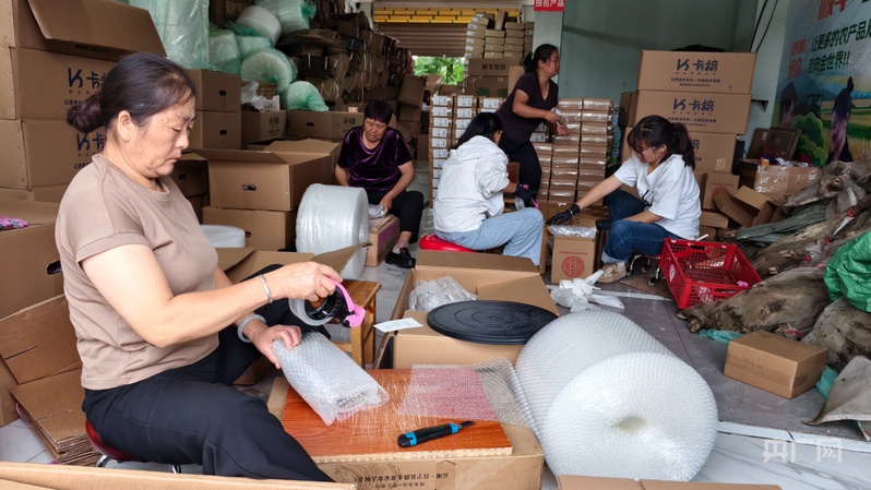 在她的仓储物流中心,来自周边乡镇的务工人员在打包、发货、客服等岗位忙碌。“在这里风不吹、日头不晒,还能顾家,每天收入也稳定。”58岁的杜晓平说。对更多年轻员工来说,能在家门口找到一份有发展空间的工作,同样让他们倍感欣喜。